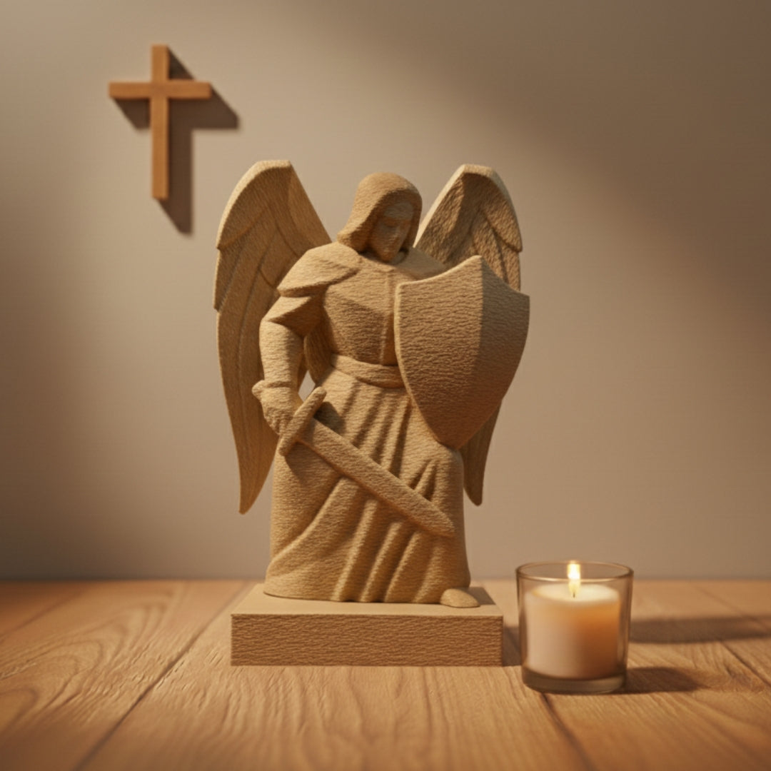 O Arcanjo Miguel é o guardião da luz e defensor do bem. Sua presença poderosa simboliza a vitória da fé sobre o mal e a força divina que protege e guia os que confiam em Deus.