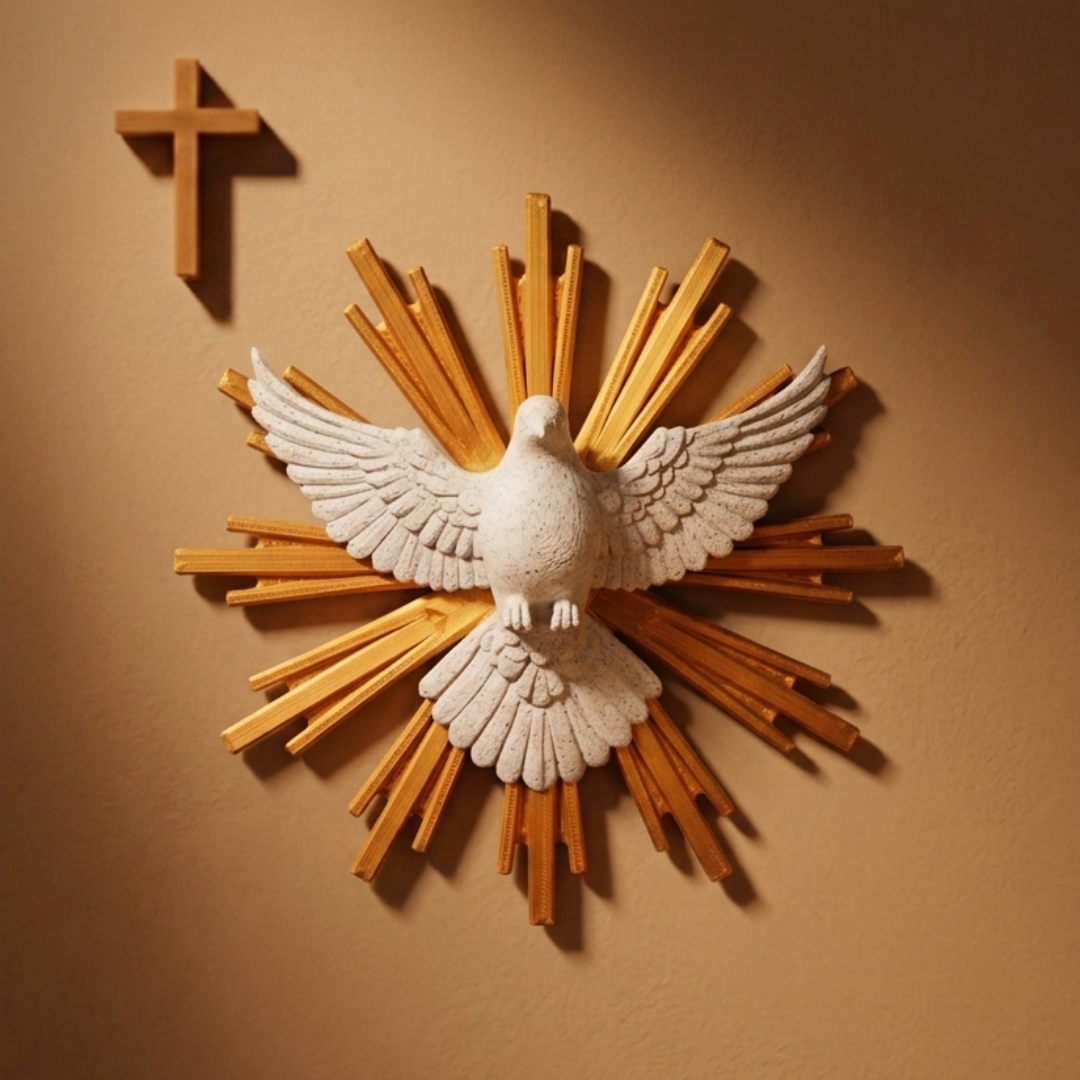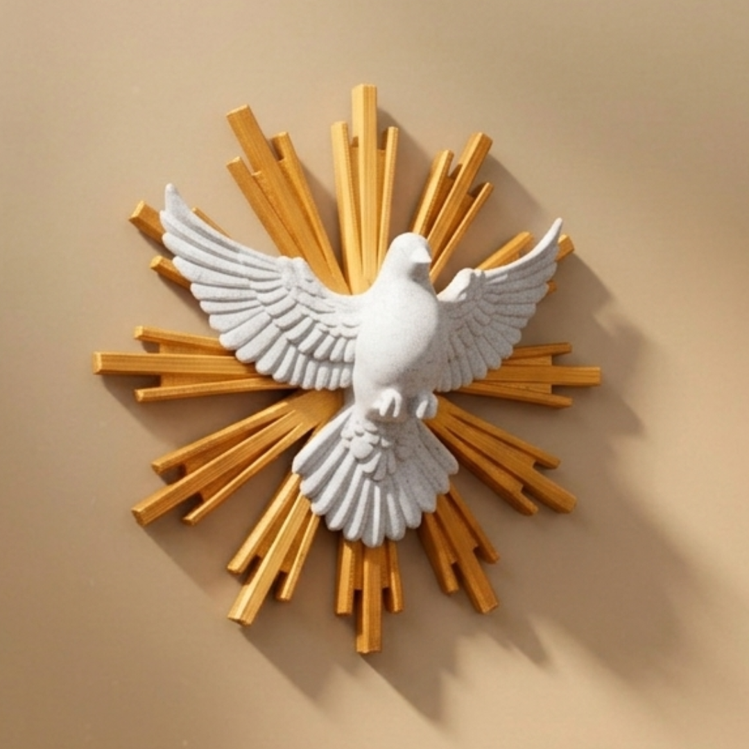 Ao estar presente no lar, traz consigo uma atmosfera de serenidade e proteção, lembrando que o Espírito Santo conduz nossos caminhos com amor e graça.