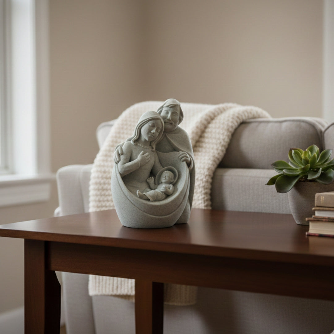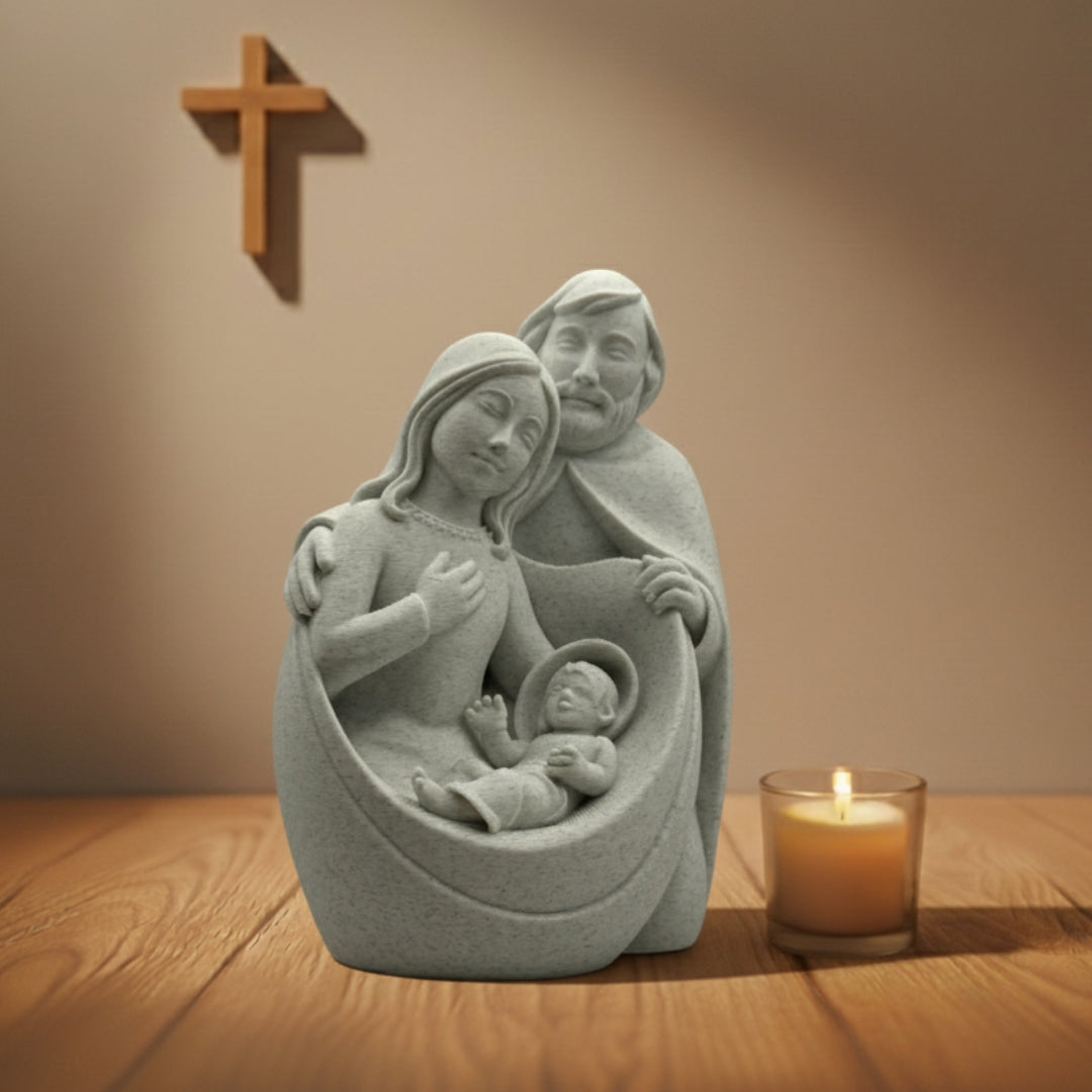Representando o amor, a união e a fé que sustentam cada lar, a imagem da Sagrada Família traz a presença serena de Jesus, Maria e José em perfeita harmonia. É um símbolo de proteção e devoção que inspira confiança nas promessas de Deus e fortalece os laços familiares.
