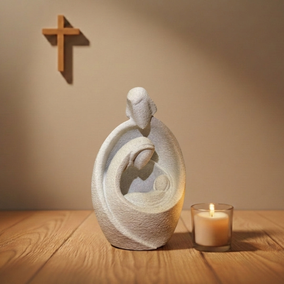 Com linhas suaves e design minimalista, a peça transmite silêncio, contemplação e espiritualidade, convidando o coração a repousar na presença de Deus. Cada detalhe simboliza a simplicidade do lar de Nazaré e a beleza da fé vivida no essencial.